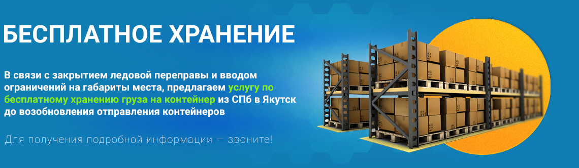 Груз на контейнер по маршруту Санкт-Петербург — Якутск принимаем на бесплатное хранение с последующим отправлением в декабре.